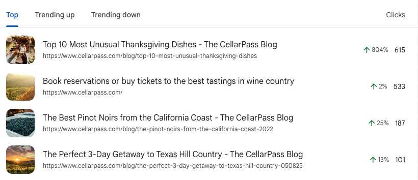 These act as powerful organic entry points. Someone searching for “best fall weekend getaways” may have no intention of discovering CellarPass—but suddenly they’re reading your content, exploring your site, and planning a wine trip they didn’t know they wanted.